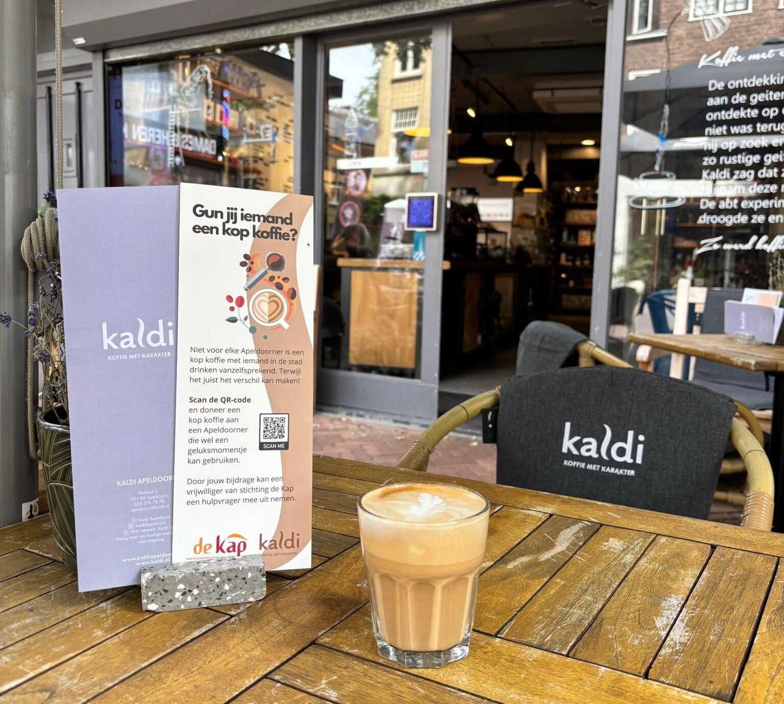 Sinds deze maand doet ook Kaldi mee aan de koffie doneeractie van de Kap! Eigenaar Remon van Wolfswinkel benaderde ons zelf: 'Aan zo'n hartverwarmend initiatief wil ik vanuit Kaldi graag meedoen!' Je vindt Kaldi aan de Paslaan tegenover restaurant Martins.