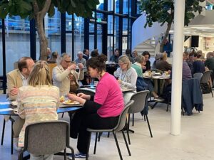 Tijdens de wijkdiners kwamen uiteenlopende thema’s aan bod. Zo werd er gesproken over eenzaamheid in de buurt: hoe herken je het en wat kun je er zelf aan doen? Zo vertelde tijdens het diner in de wijk Noordwest een van de wijkbewoners dat zij een kaartje in de brievenbus had gedaan bij een oudere buurtbewoonster met de vraag of ze kon helpen met haar voortuintje te snoeien.” Een kleine actie maar wellicht wel een die tot steun kan zijn. Maar ook praktische vragen passeerden de revue: hoe zorgen we samen voor meer groen in de wijk?