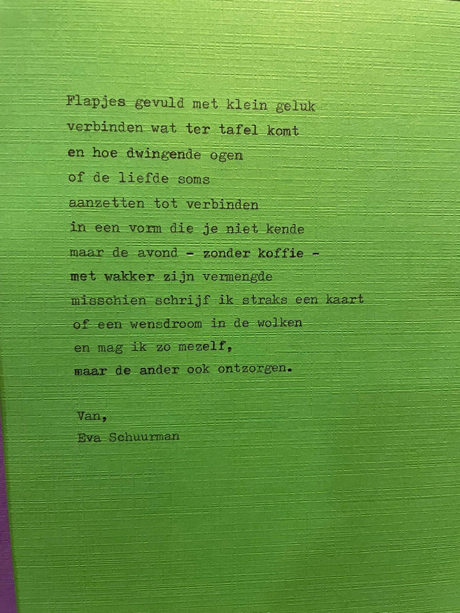 De gesprekken vormden de inspiratie voor verschillende kunstwerken. Woordkunstenares Eva Schuurman droeg tijdens de avond het gedicht RAAD voor aan de burgemeester — een waar kunstwerk dat de kern van alle avonden en gedeelde ervaringen krachtig samenvatte.