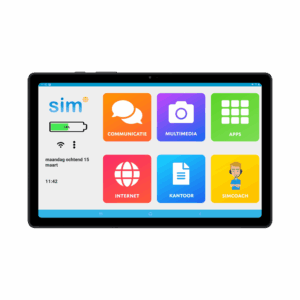 Bij de SimTab is de menustructuur speciaal voor ouderen samengesteld. Anders dan de tablets die je bij een electronica-winkel zult vinden. Doordat ze een vast aantal apps per scherm laten zien, bieden ze structuur en houvast. Je kunt zelf, of met de hulp van een SimCoach, de knoppen en menustructuur naar eigen voorkeur aanpassen.