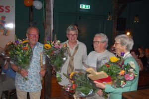Onze jubilarissen werden gehuldigd met bloemen en een persoonlijke houten borrelplank — een klein gebaar voor hun grote inzet!🌸