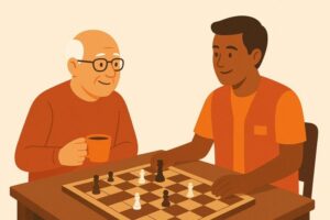 Voor een vriendelijke meneer van midden 70 jaar (rolstoelgebonden, kan kleine stukjes lopen) zoeken we een vrijwilliger die hem gezelschap wil houden op maandagmiddag, terwijl zijn vrouw – die 24/7 mantelzorger is – even tijd voor zichzelf heeft.