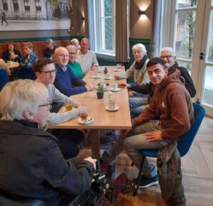 Wat eigenlijk een stadswandeling zou worden, veranderde door de regen in een gezellig alternatief programma. We liepen samen naar de Kap, waar een vrolijke quiz en spelletjes al snel voor veel gelach zorgden.