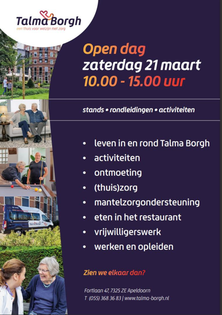 Ook dit jaar organiseert Talma Borgh, een thuis voor welzijn met zorg, weer een open dag. Deze keer op zaterdag 21 maart van 10.00 tot 15.00 uur.